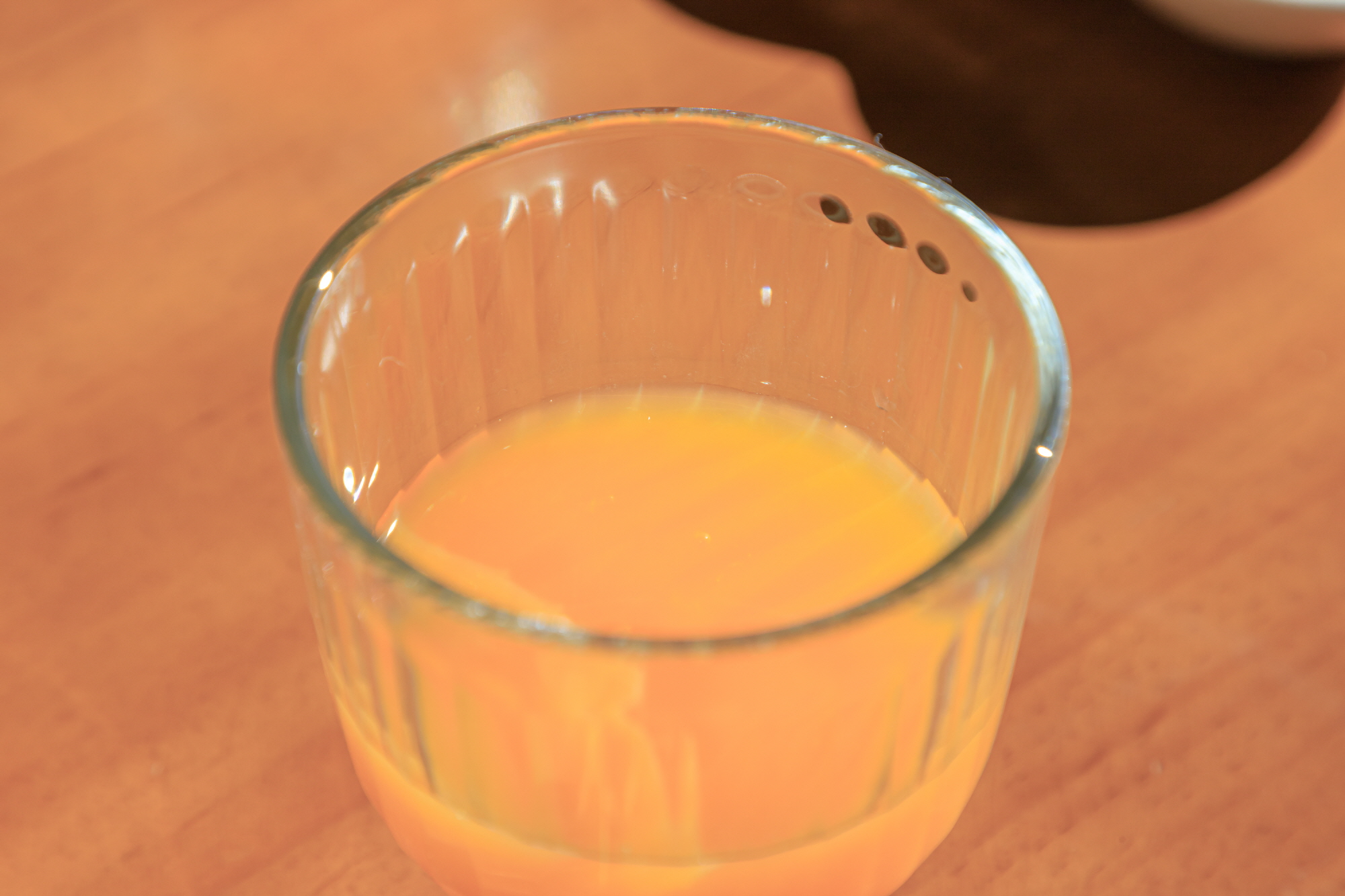 홀가분치킨에는 흑돼지돈까스 주문을 하면 제철 샐러드와 후레쉬 주스를 서비스가 나왔습니다.