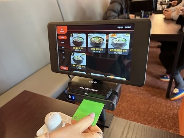 양재 맛집의 메뉴는 각 테이블에 설치된 키오스크로 주문하고 바로 결제가 가능하며, 선불로 결제하고 먹으니 마음 편하게 먹을 수 있는 점이 좋았습니다.