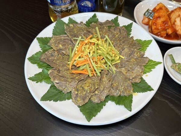 맥주 한잔하니까 살짝 허기져서 가볍게 술안주로 아롱사태 무침도 추가로 시켜줬답니다.